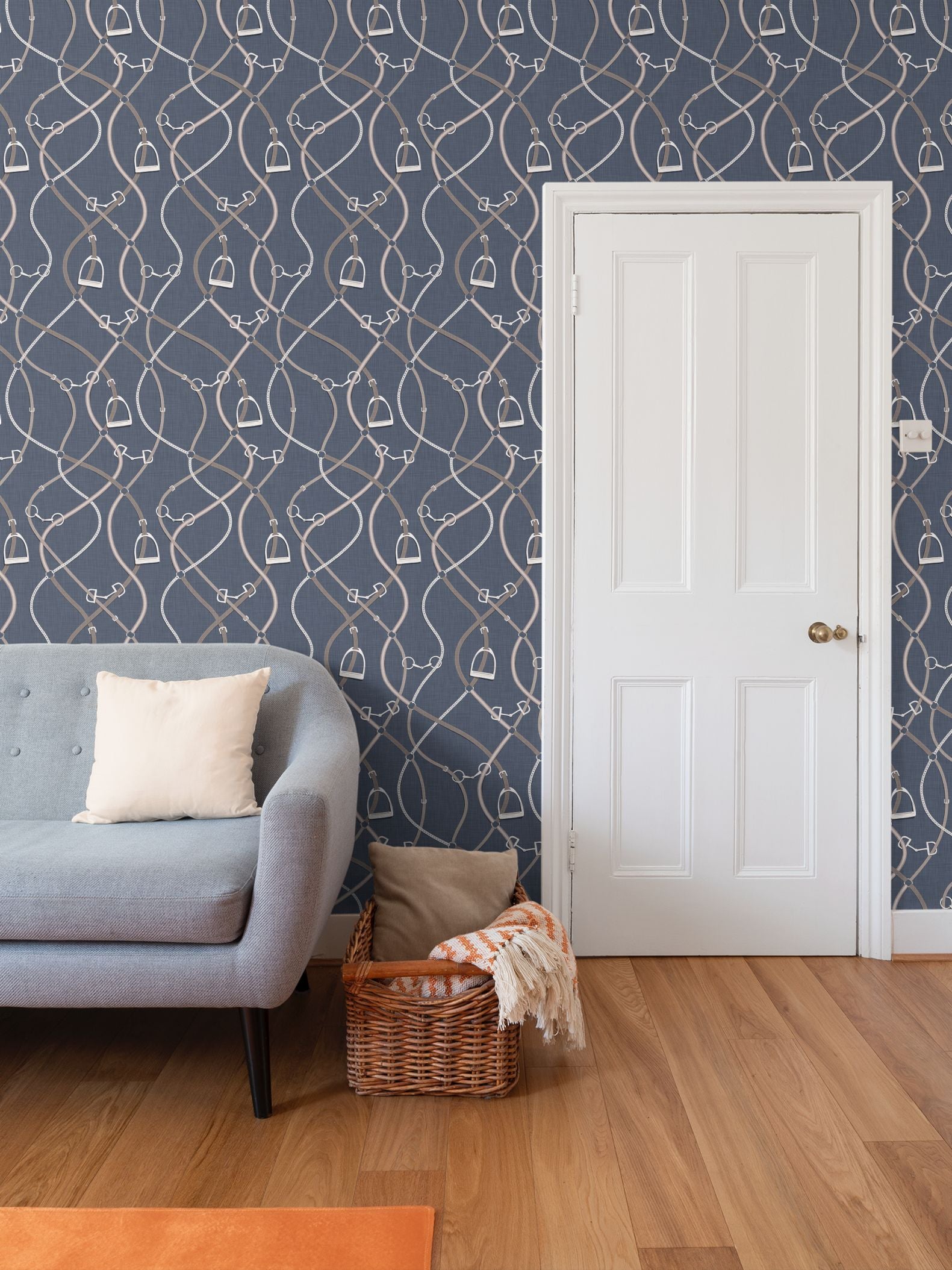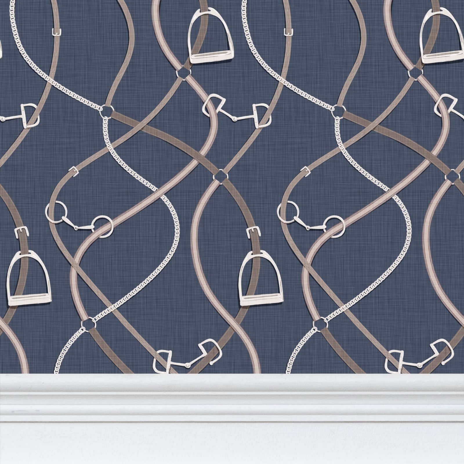 Foxcroft Equestrian Wallpaper in Navy Blue