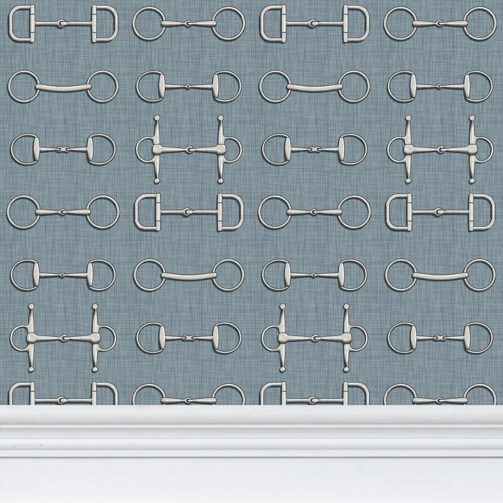 Wallpaper – Ashby Horse Bits in Blue Serge