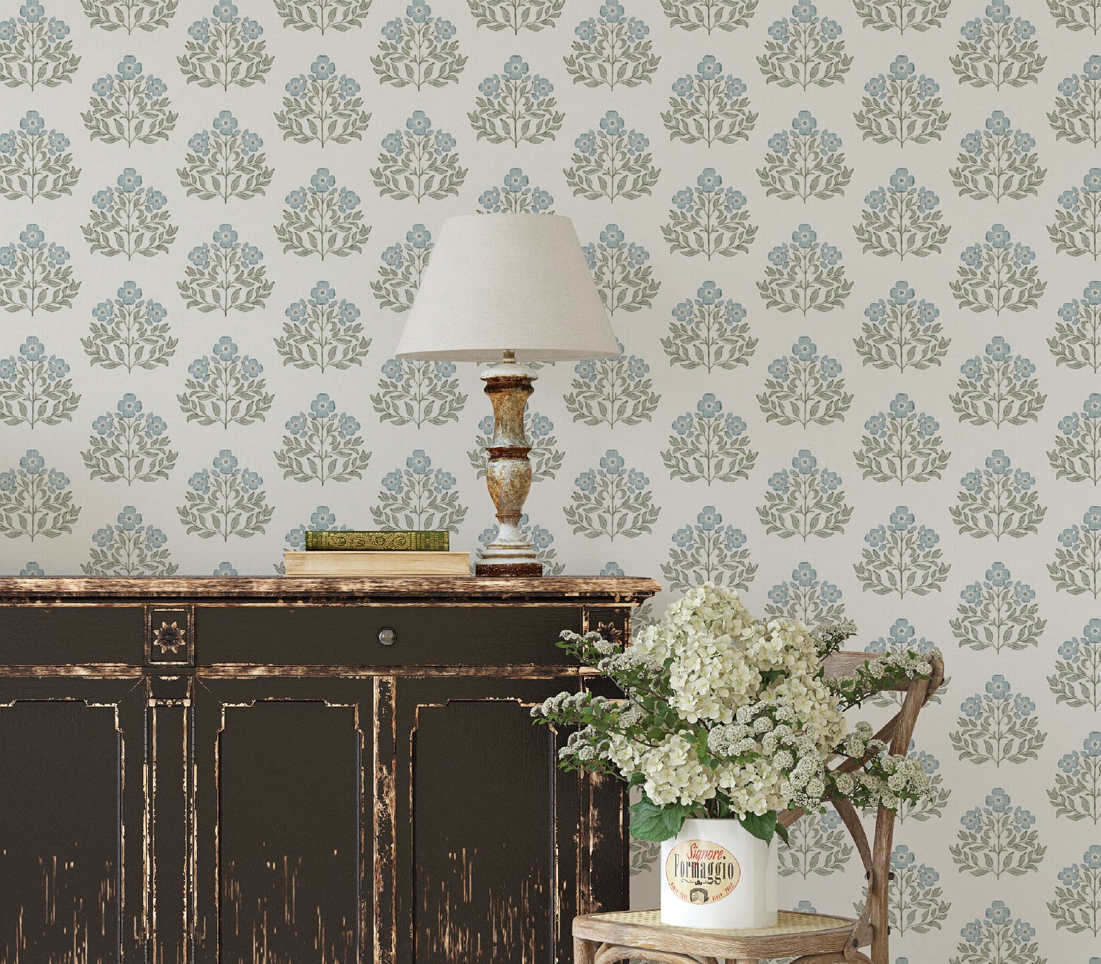 Wallpaper – Lettie in Provençal Blue and Sage Green