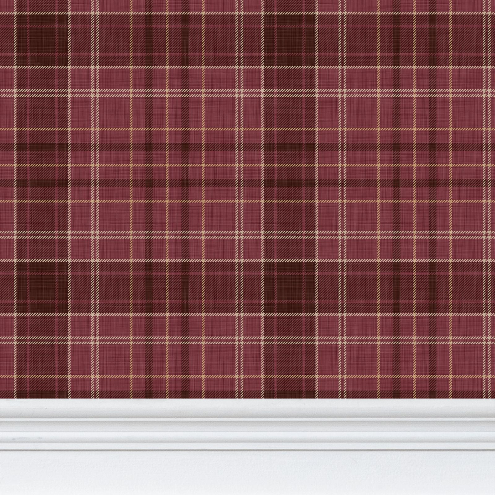 Morgan tartan plaid brings warmth and a sense of traditional to walls, furnishings, and home décor. This hard working print is a versatile addition to equestrian, cabincore and cottagecore interiors. The Garnet colorway is a rich combination of burgundy red, gold, and cream. Pair with dark woods and warm metals for a classic look.