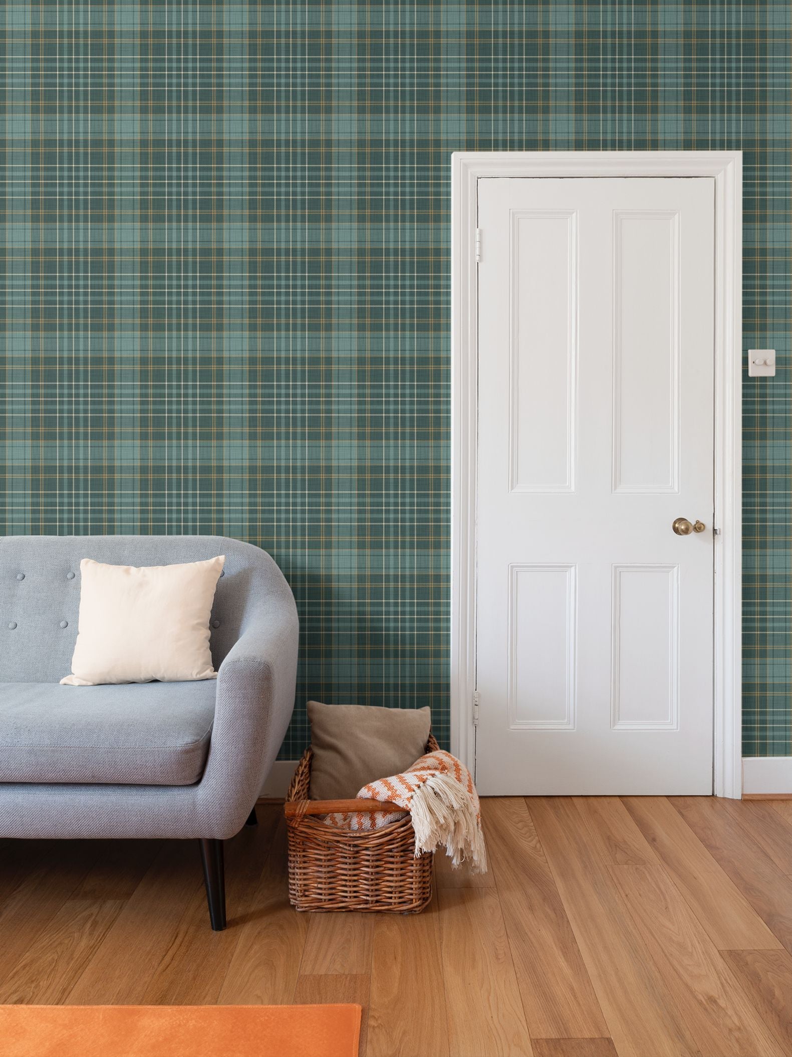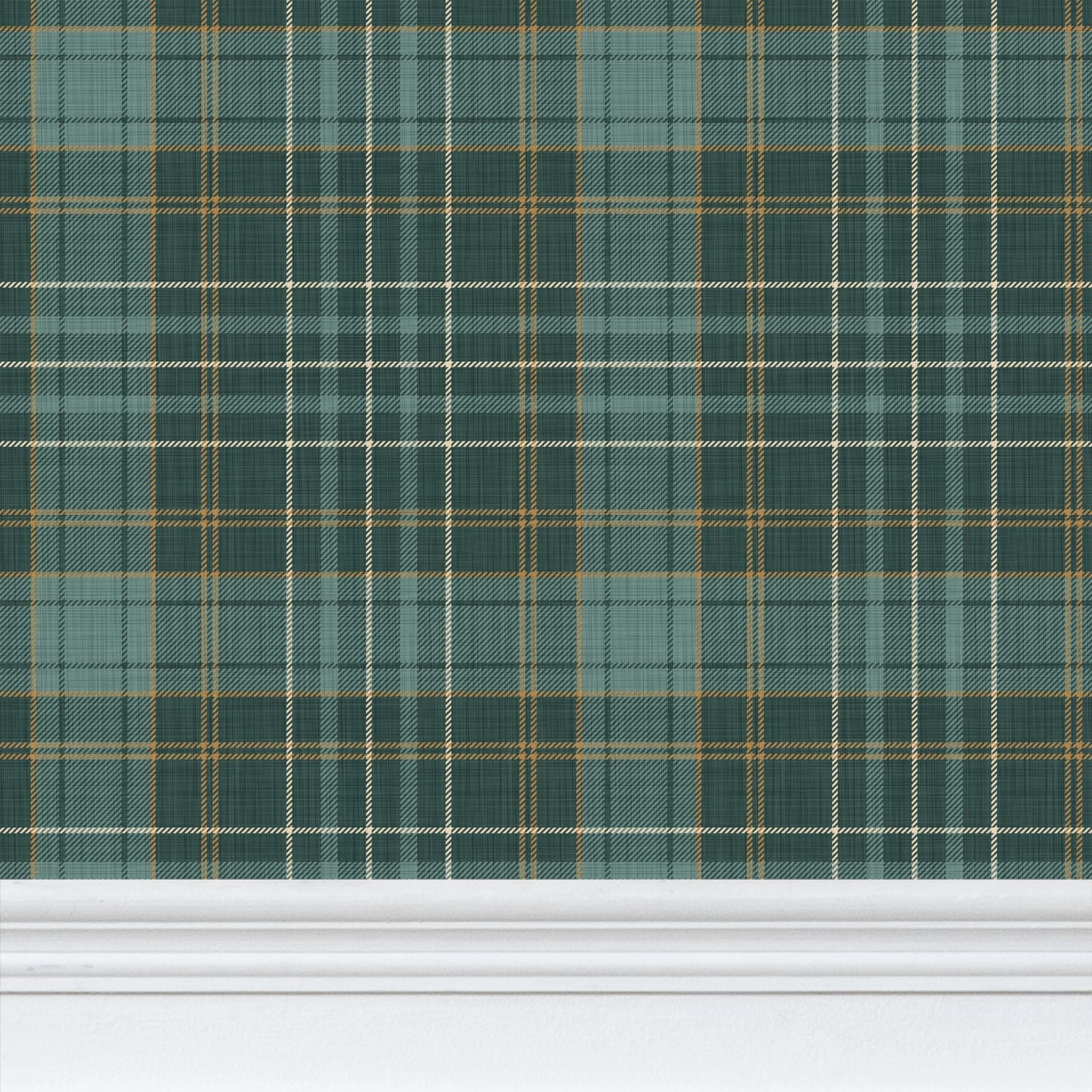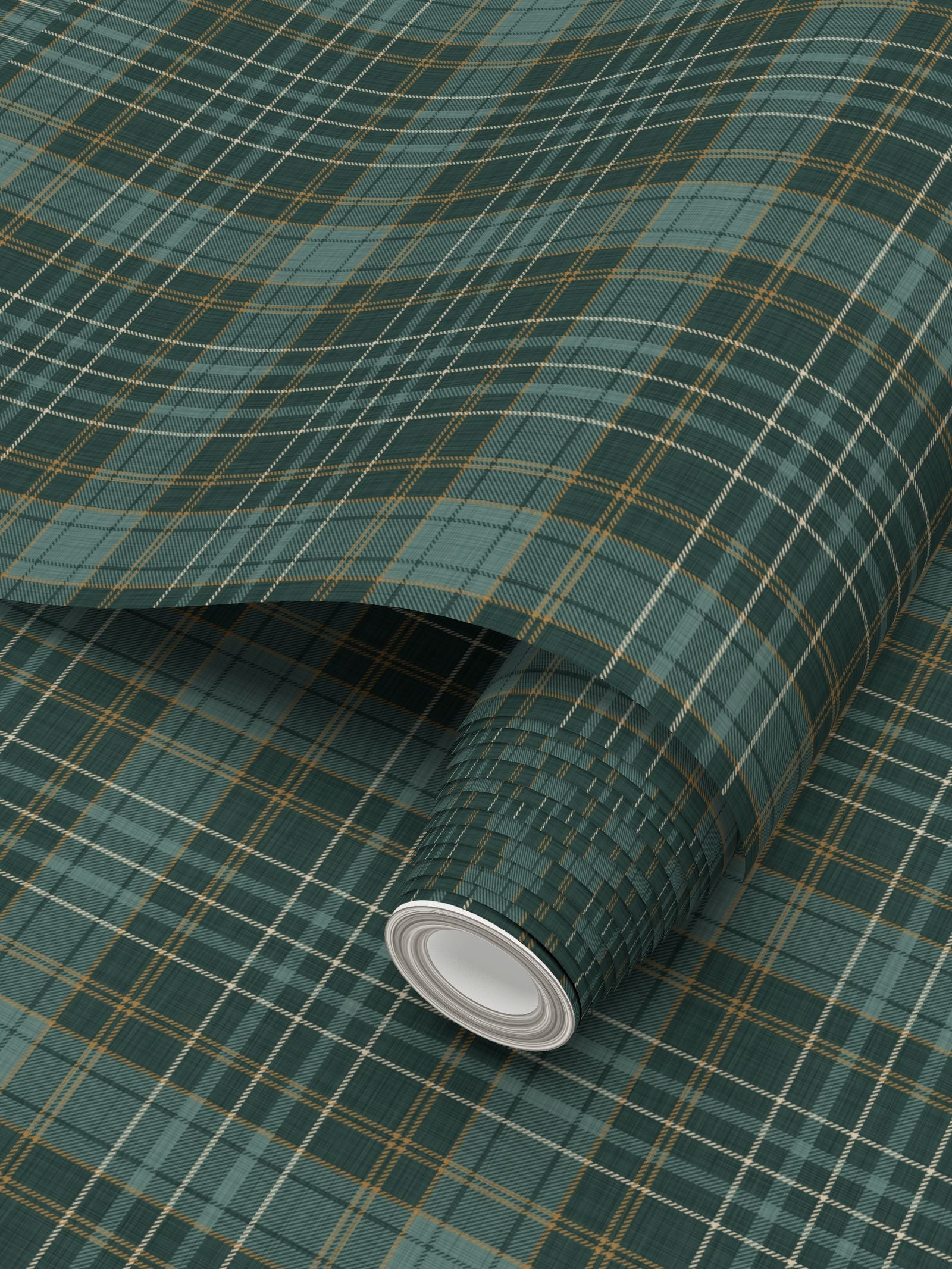Morgan tartan plaid brings warmth and a sense of traditional to walls, furnishings, and home décor. This hard working print is a versatile addition to equestrian, cabincore and cottagecore interiors. The Juniper colorway is a rich combination of hunter green, gold, and cream. Pair with dark woods and bright metals for a classic look.